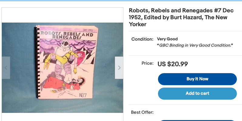 Just recently while browsing the web I came across an issue of a publication I had edited and written for, a fanzine called Robots, Rebels, & Renegades, for sale on eBay from BB’s General Store.