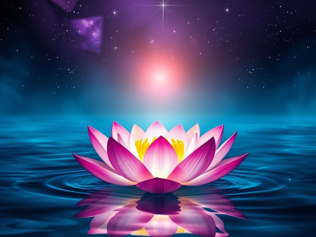 INPUT: “A lotus flower drifting on a cosmic sea.”