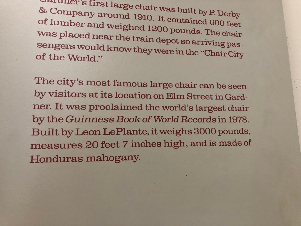 Since I have visited Gardner Massachusetts, I have wondered if Christopher Guest and Eugene Levy based the fictional city of “Blaine” Missouri, “The Stool Capital of America”, on Gardner.