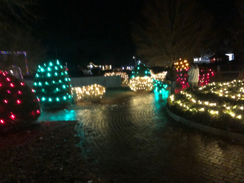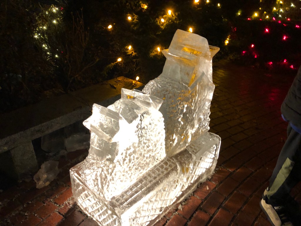 This New Yearโs Eve we visited this enchanted place and it was a veritable winter wonderland with fun for all ages. They had pretty Christmas lights and some ice sculptures, essentially a mini version of the First Night celebrations in Boston.