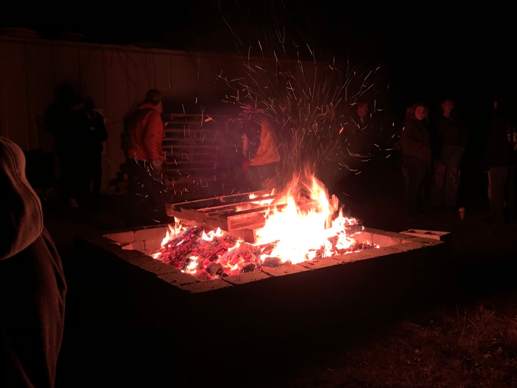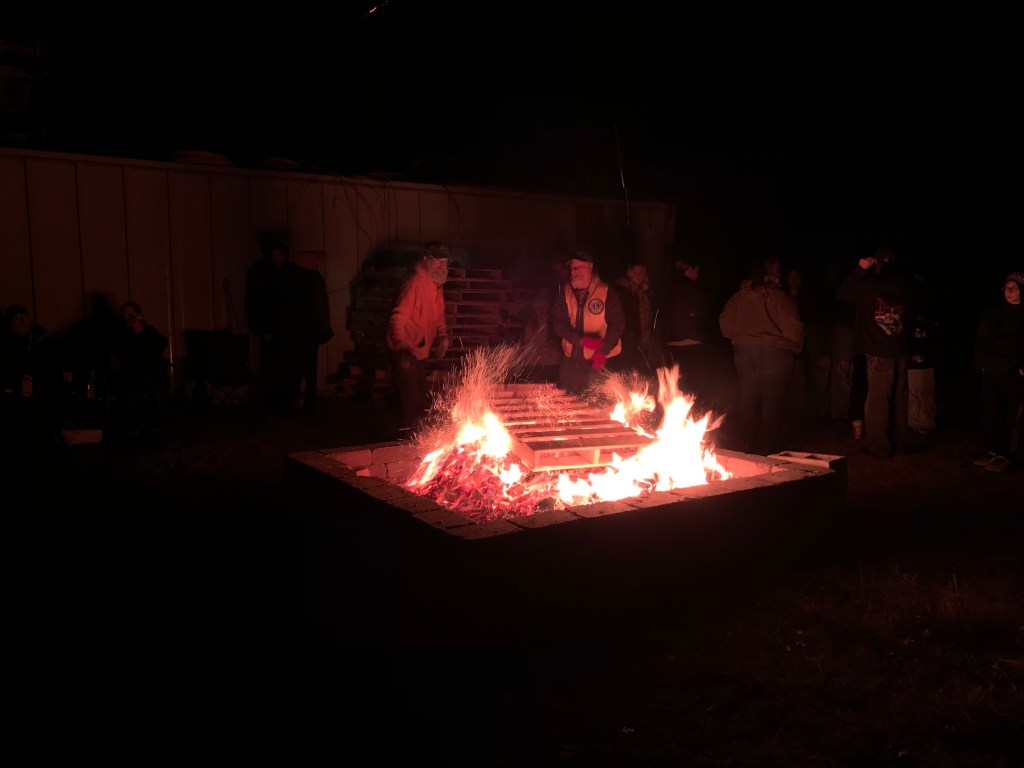 It was all really festive and we had a good time. The even had a nice bonfire which was great to keep warm and they had these two dudes chucking pallets on the blaze to keep it going. It was a return to Guy Fawkes Bonfire Night which actually was once celebrated in New England by the way: https://historicipswich.net/2022/11/14/guy-fawkes-day/#:~:text=The%20Puritans%20who%20settled%20in,thus%20remove%20Protestants%20from%20government.