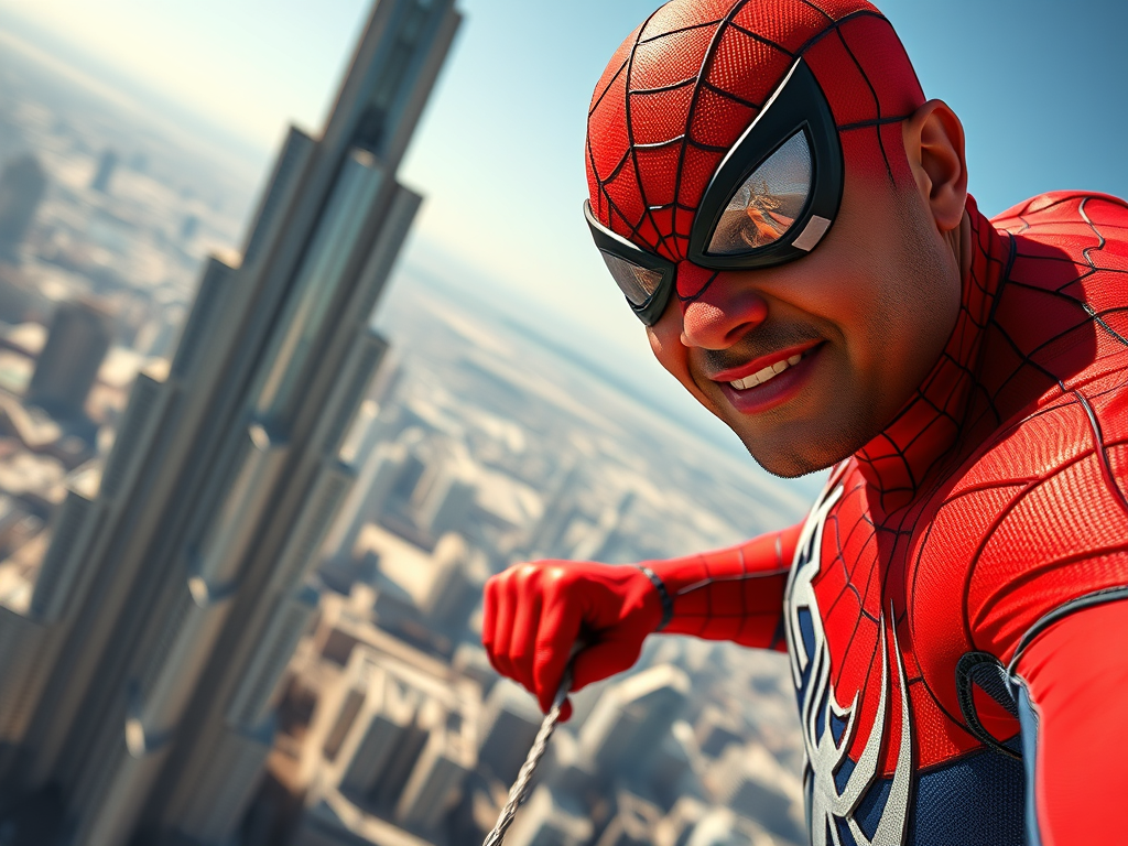 Craig Charles in a Spiderman outfit climbing the Burj Khalifa.