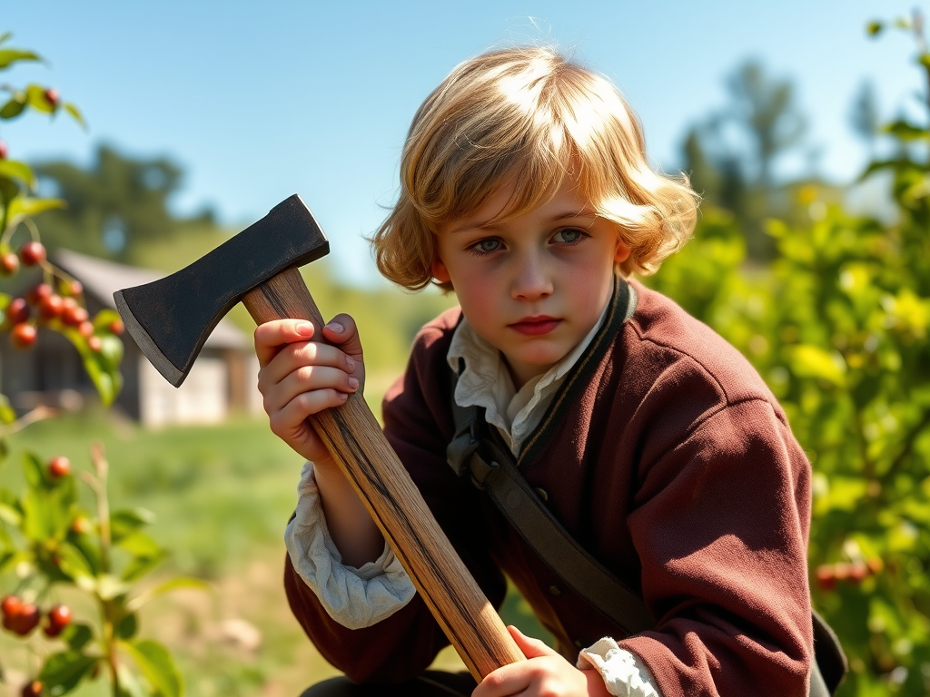 The cherry tree myth is one of the oldest and best-known legends about George Washington. In the original story, when Washington was six years old, he received a hatchet as a gift and damaged his father’s cherry tree with it. When his father discovered what George had done, he became angry. Young George bravely said, “I cannot tell a lie…I did cut it with my hatchet.” Washington’s father embraced him and declared that his son’s honesty was worth more than a thousand trees.