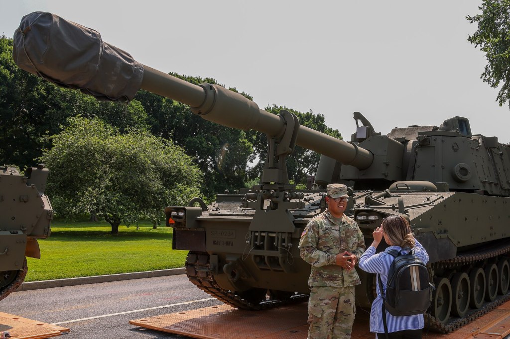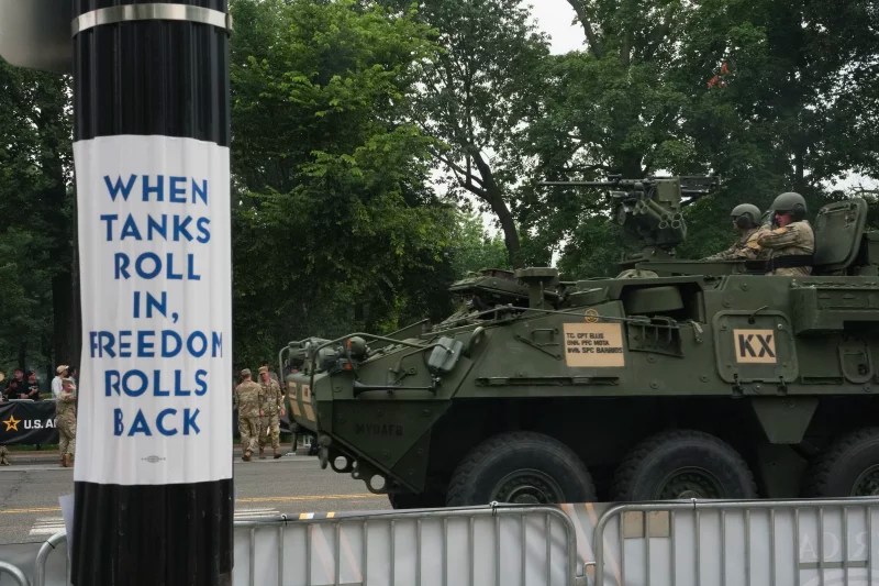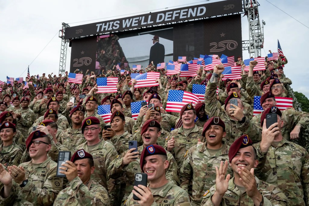 Oh, and of course it gets better. As part of the 250th birthday celebrations of the U.S. Army on June 14 the U.S. Army Grand Military Parade went ahead as planned on June 14th. The parade had some units in the uniforms of soldiers from past wars (Revolutionary War, Civil War, WWI, WWII, Korean War, Vietnam War, Gulf War), modern units, as well as various military hardware like tanks, armored fighting vehicles, helicopters, planes, howitzers, etc.